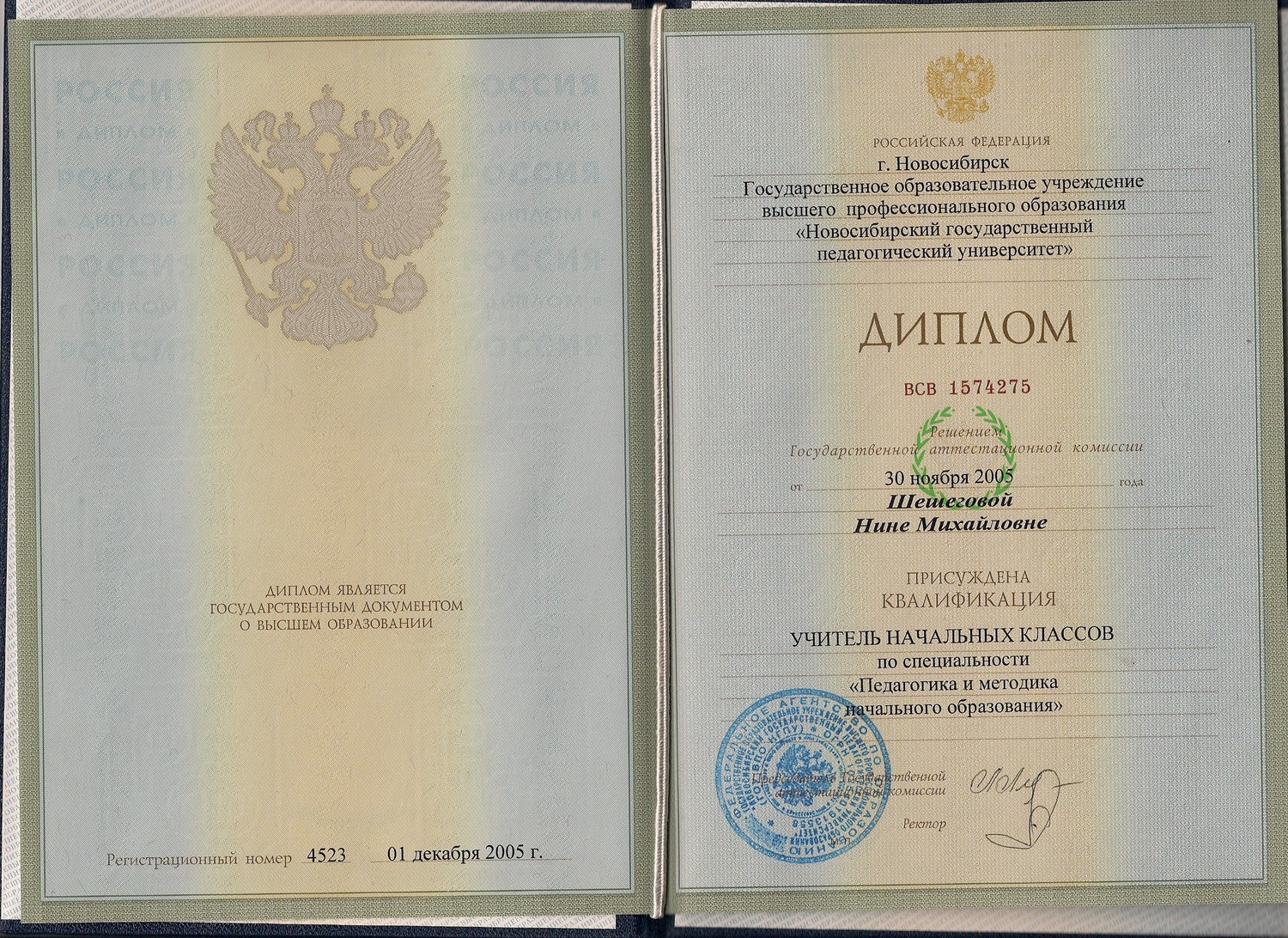 Высшее педагогическое (НГПУ, 2005) |