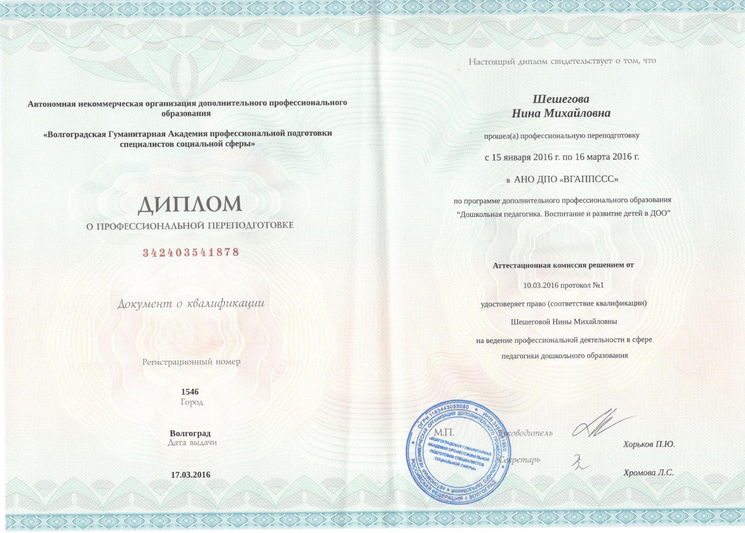 Диплом о профессиональной переподготовке |